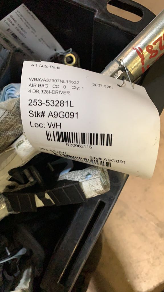 $150.00 Stock#A9G091 Inventory #: R61756 Loc:W2.28B VIN: WBAVA37507NL16532 Milage: 155000 Source Vehicle Color: GREEN Conditions/Options:4 DR,328I--WHEEL Interchange Part Number:253-53278L Hollander Interchange found this part as interchangeable with: BMW 323i 06 (Sdn, Canada market), driver, wheel, (3 spoke design), 6 sided air bag, from 2/06; BMW 323i 07-11 (Sdn, Canada market), driver, wheel, (3 spoke design), 6 sided air bag; BMW 325i 06 Sdn, driver, wheel, (3 spoke design), 6 sided air bag, from 5/06; BMW 325i 06 SW, driver, wheel, (3 spoke design), 6 sided air bag, from 5/06; BMW 328i 07-10 Sdn, (front), driver, wheel, (3 spoke design), 6 sided air bag; BMW 328i 07-12 SW, (front), driver, wheel, (3 spoke design), 6 sided air bag; BMW 328i 11 Sdn, (front), driver, wheel, (3 spoke design); BMW 330i 06 Sdn, driver, wheel, (3 spoke design), 6 sided air bag, from 5/06; BMW 335i 07 Sdn, driver, wheel, (3 spoke design), 6 sided air bag, from 5/07; BMW 335i 08 Sdn, driver, wheel, (3 spoke design), 6 sided air bag; BMW 335i 09-11 Sdn, driver, wheel, (3 spoke design), 6 sided air bag, gasoline